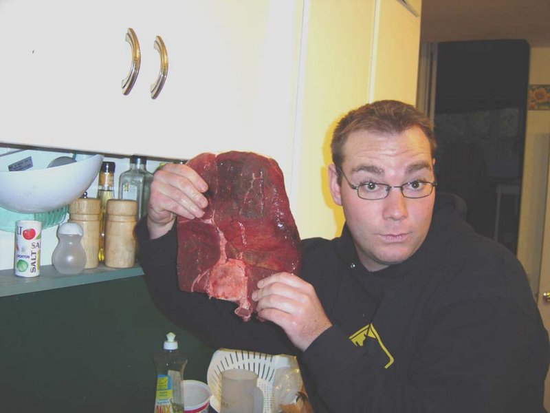 My buddy Erik about to eat a big steak! Picture by Earl Kowalczyk.