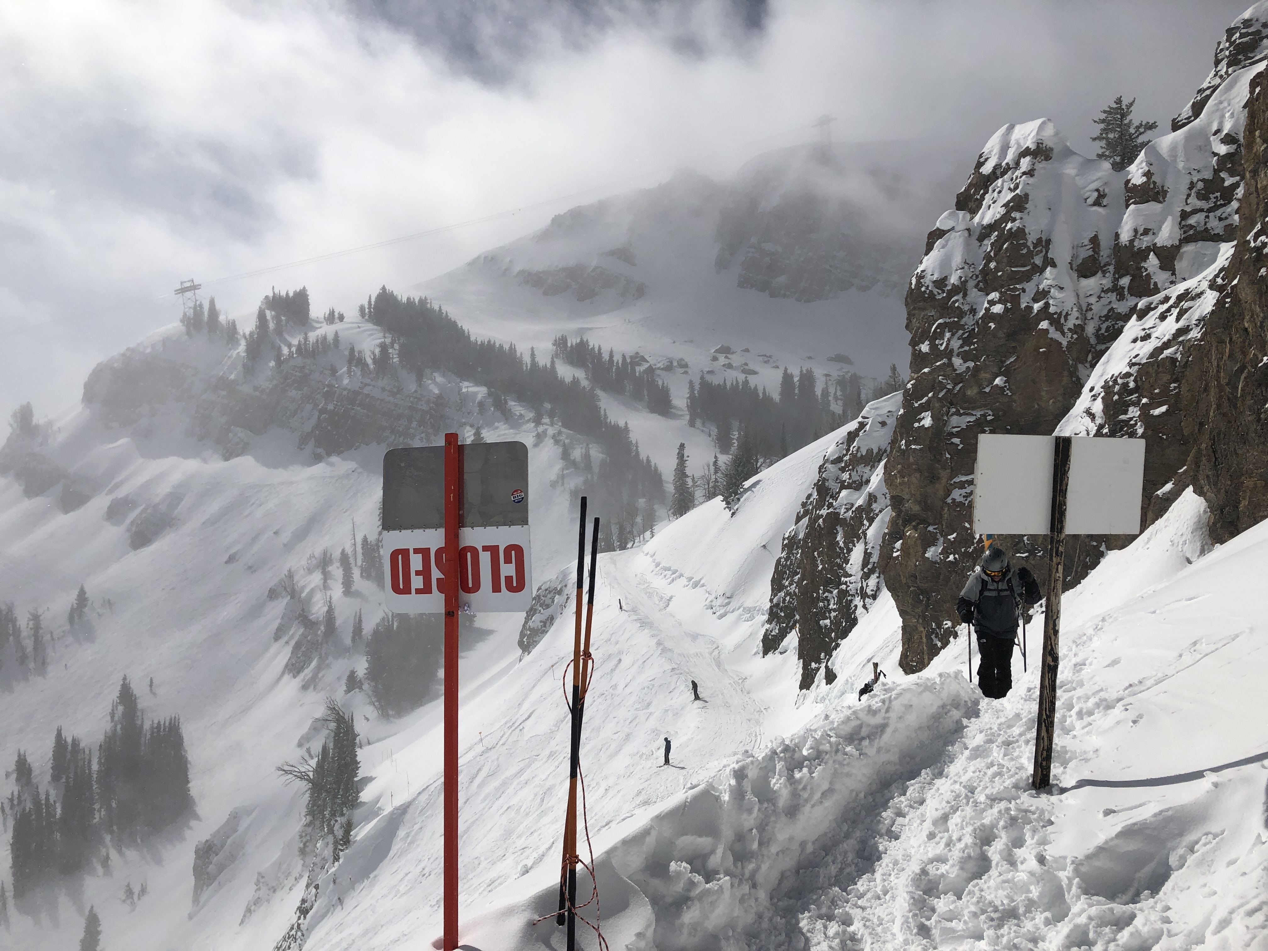 I encouraged Kevin to hike for some turns on the Headwall on JHMR. It was more than a little windy