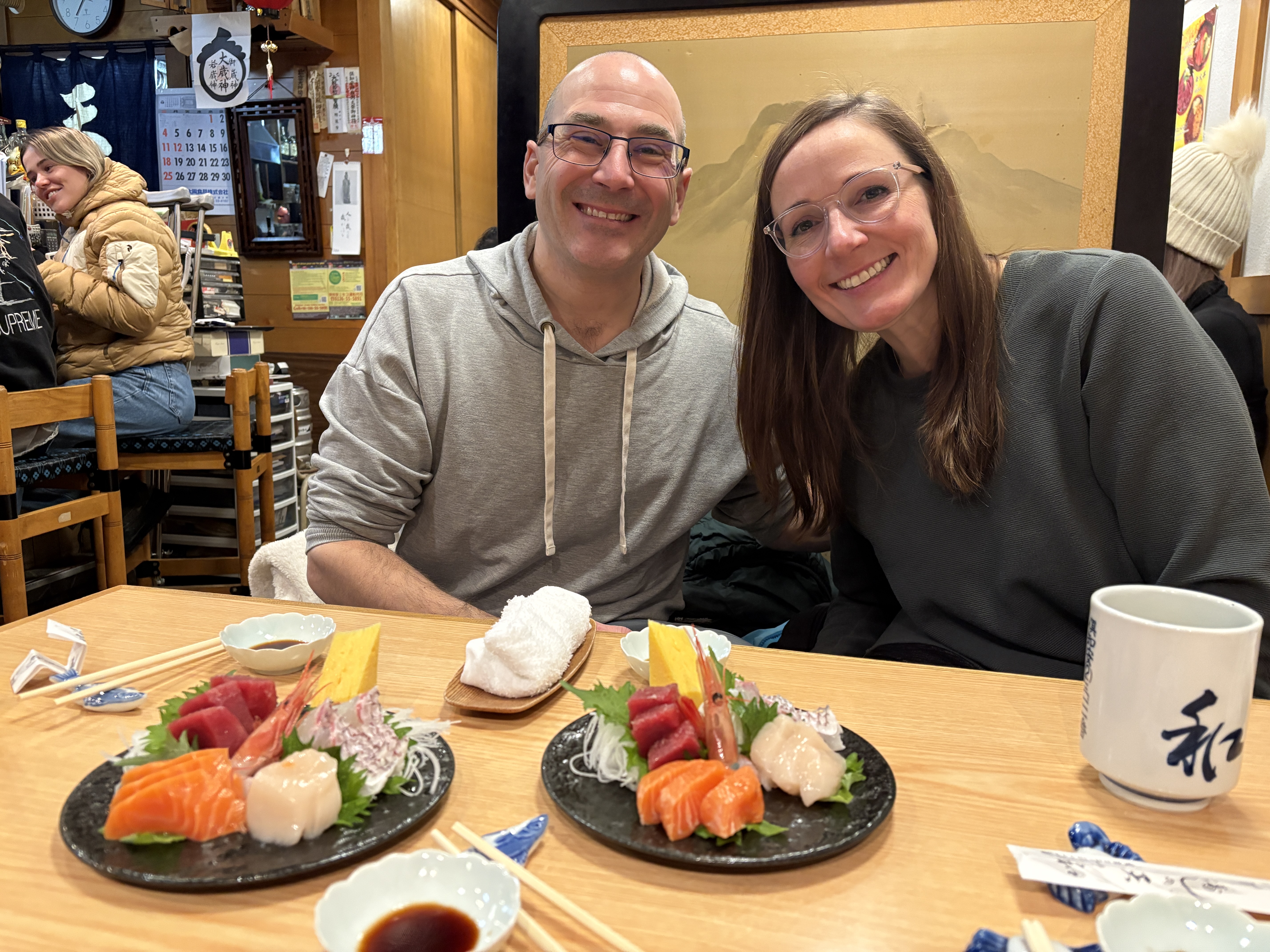 Jen, JB, and Natalia at Rusutsu lunch spot.