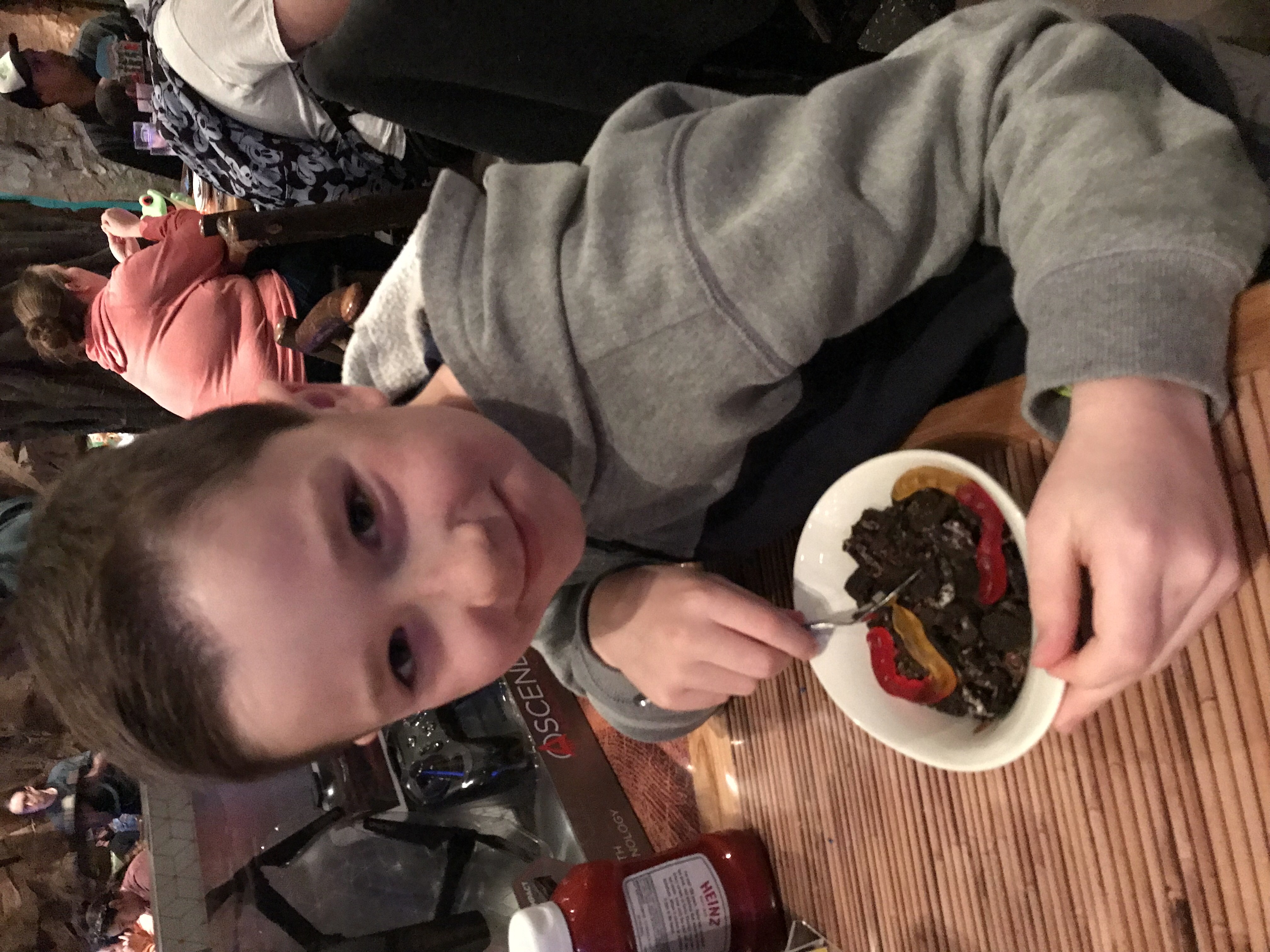 Henry with his birthday cupcake from the hotel.