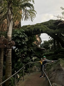 Outside the Rainforest Cafe with the volcano and alligators. Note Henry's drone that he bought with his