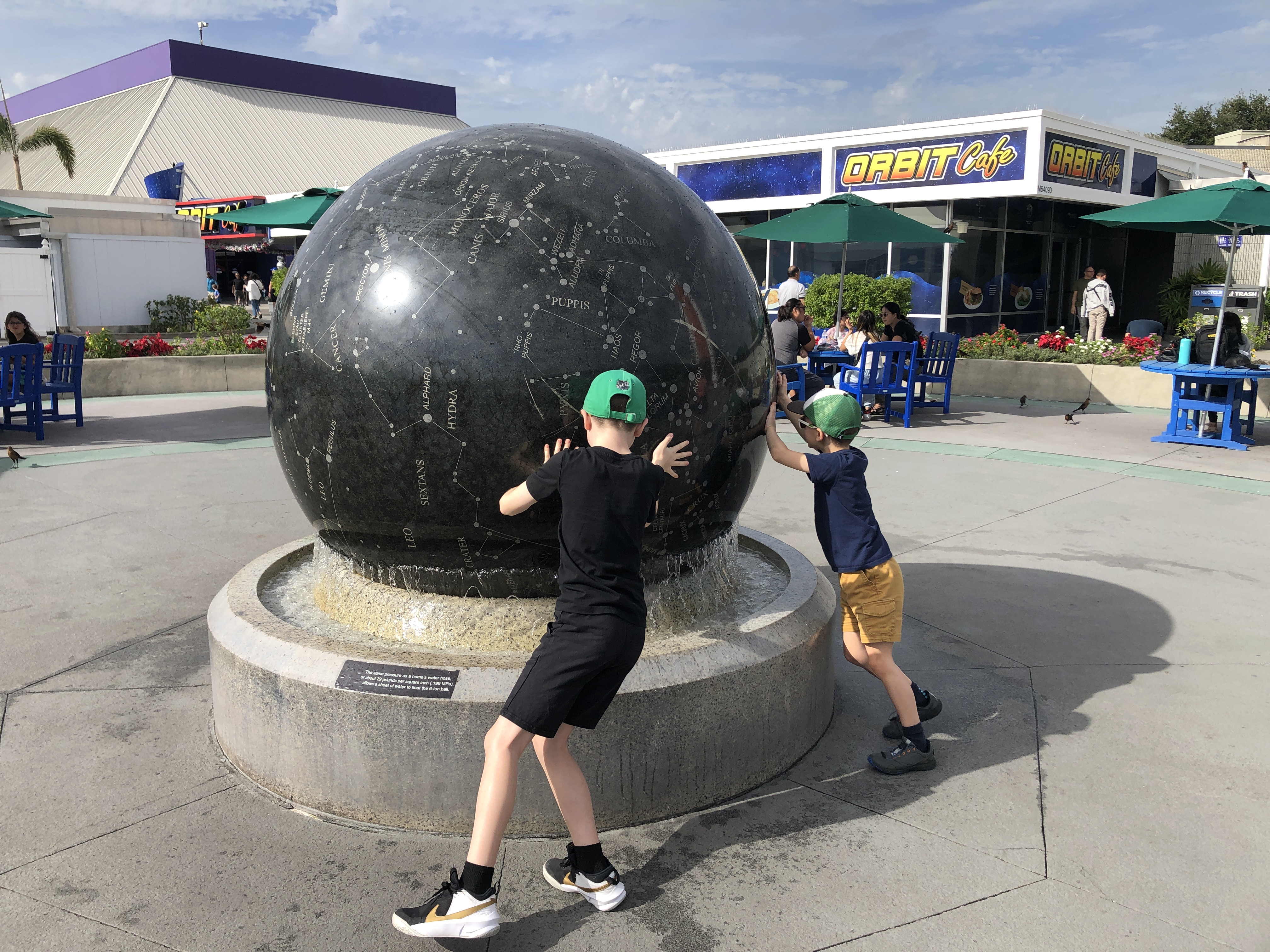 This 6 ton granite ball was a big draw for the boys. It's floating on water so they got a big kick