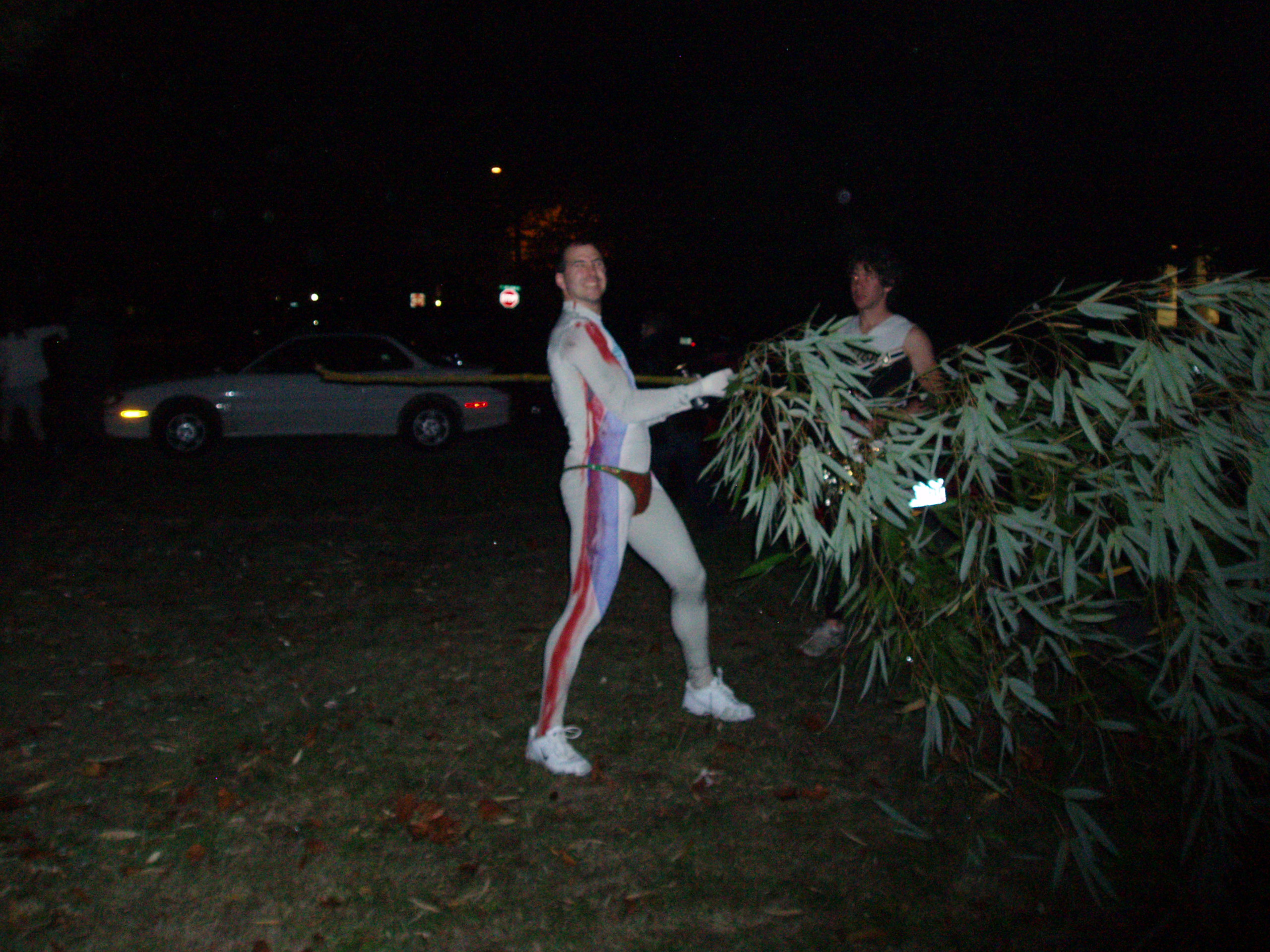 Somebody knocked over the host's bamboo plant and it seemed like a good idea to play javelin with it.
